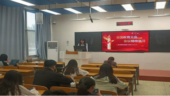 9月26日,9728太阳集团会计学生第一党支部于在三教B109教室开展主题为“深入学习习近平总书记在全国教育大会上的重要讲话精神”的党日活动。活动由支部书记田甜主持,全体支部党员参加。